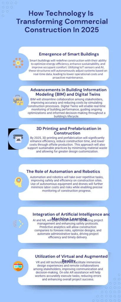 Rapid changes in technology are altering the commercial construction landscape. In 2025, the technologies highlighted below will play a pivotal role.